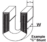 CAL Manufacturing has adopted a different process than other manufacturers for laminated Shunts. A CAL laminated shunt can be hand wound and formed as well as formed with cut laminations. When the laminations are not cut, but continue around the ends of the shunt without interruption, the current may also flow around the ends. This results in a greatly improved distribution of current and a more even distribution of heat throughout the entire shunt. Both methods of shunt formation are utilized depending on the size and nature of the shunt being designed. The standard CAL shunt is made from .005" copper laminations but .003" and .010" are available upon request. Fill out the sheet on the next page or provide us with a drawing or print with the following information. | Length to the outside sheet (OL) | Laminations to be used .005" Etc. | | Width (W) | End treatment (Clip, Solder Etc.) | | Thickness, excluding clip (T) | Type of shunt ("C", "J", "L" "F" Etc.) | | Drill size or boll size | Drill pattern (See next page) |